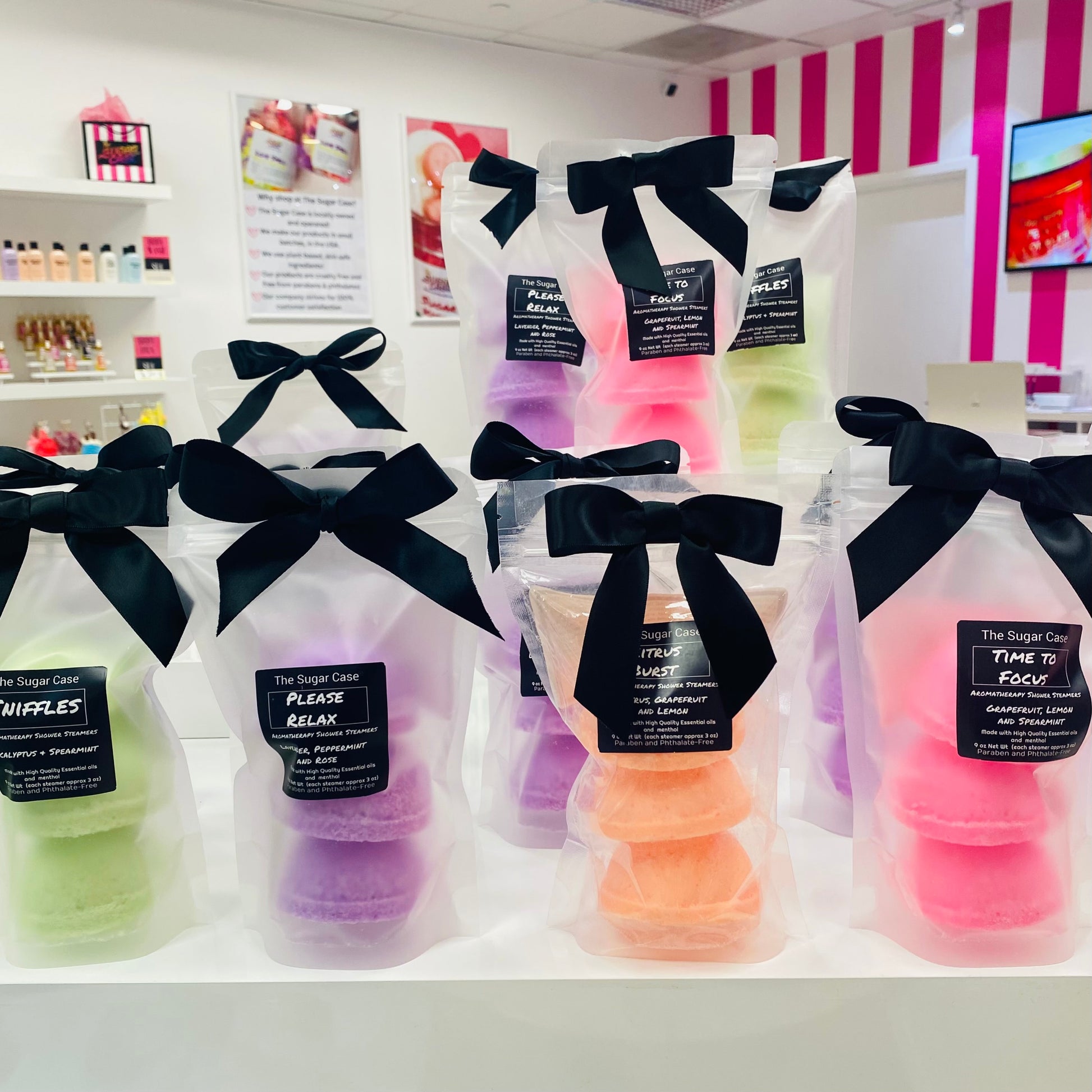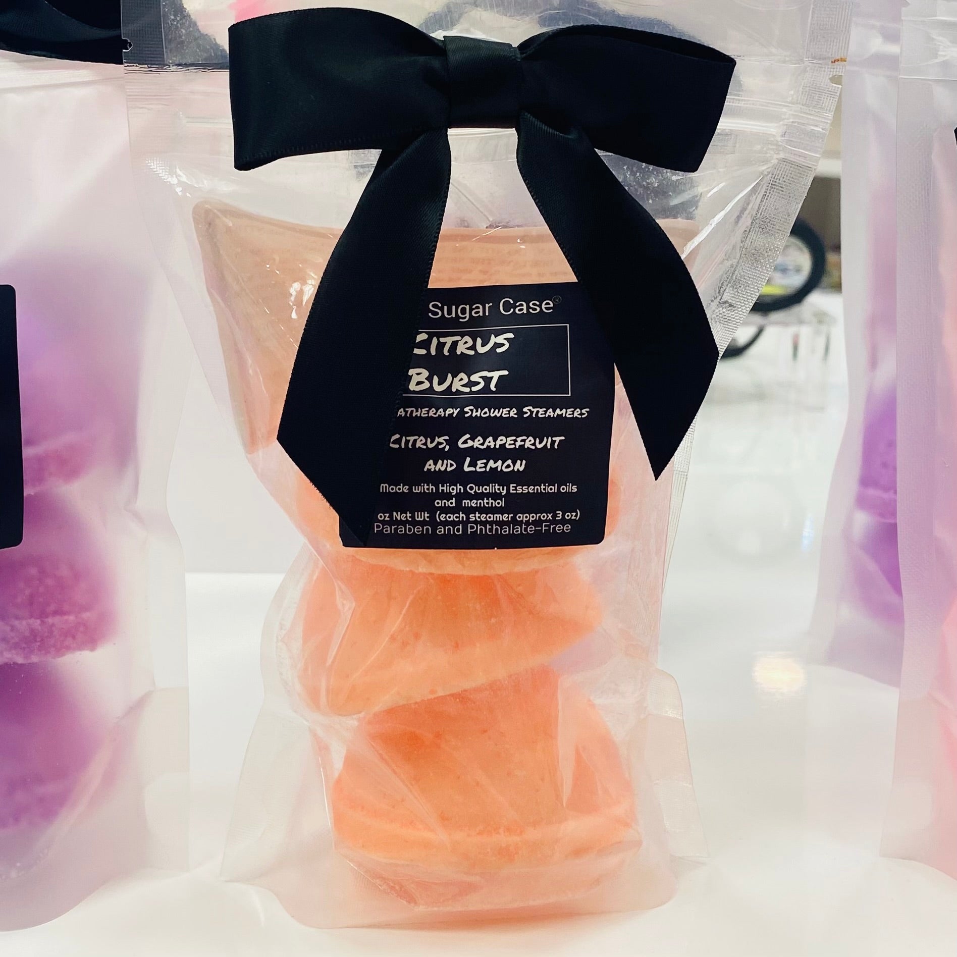 Turn your shower into a spa experience using one of our handcrafted shower steamers. Each shower steamer is packed with aromatherapy scents that will not only benefit you but will also allow you to relax your mind and body. The added menthol helps with congestion and opening your sinuses.