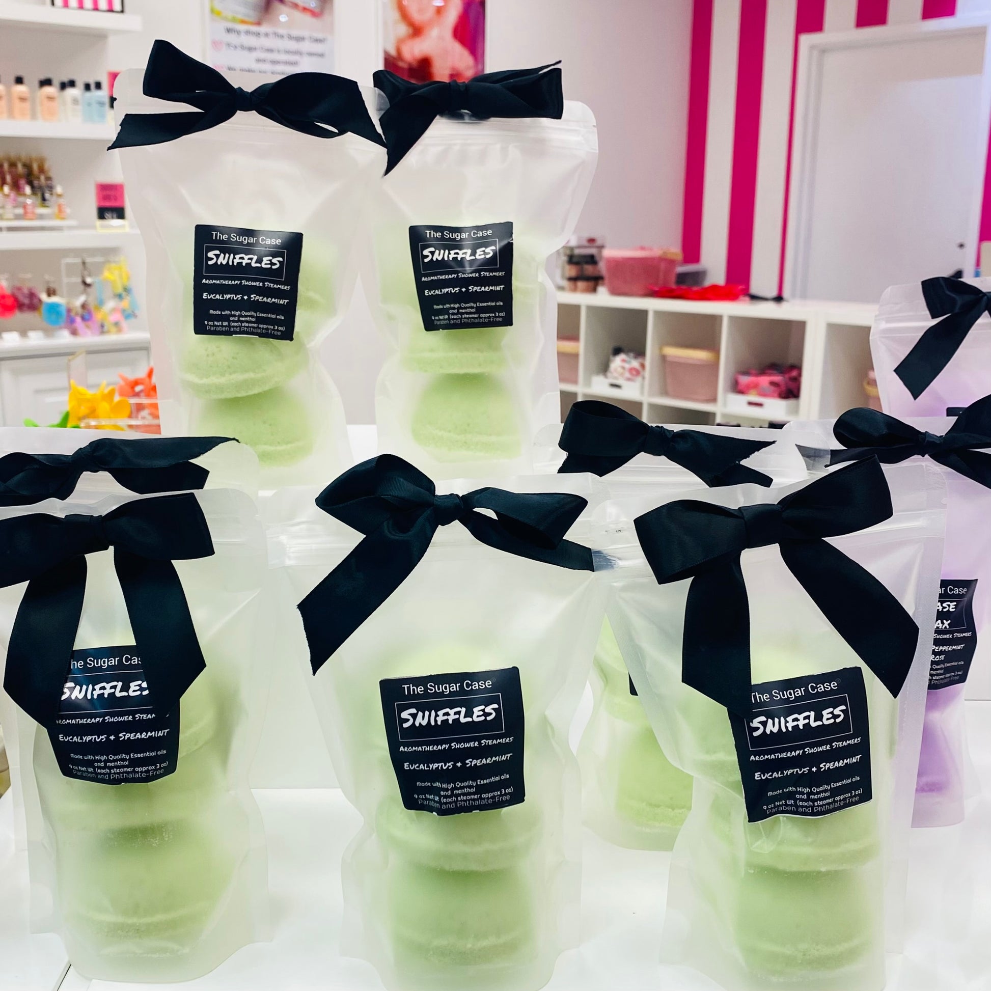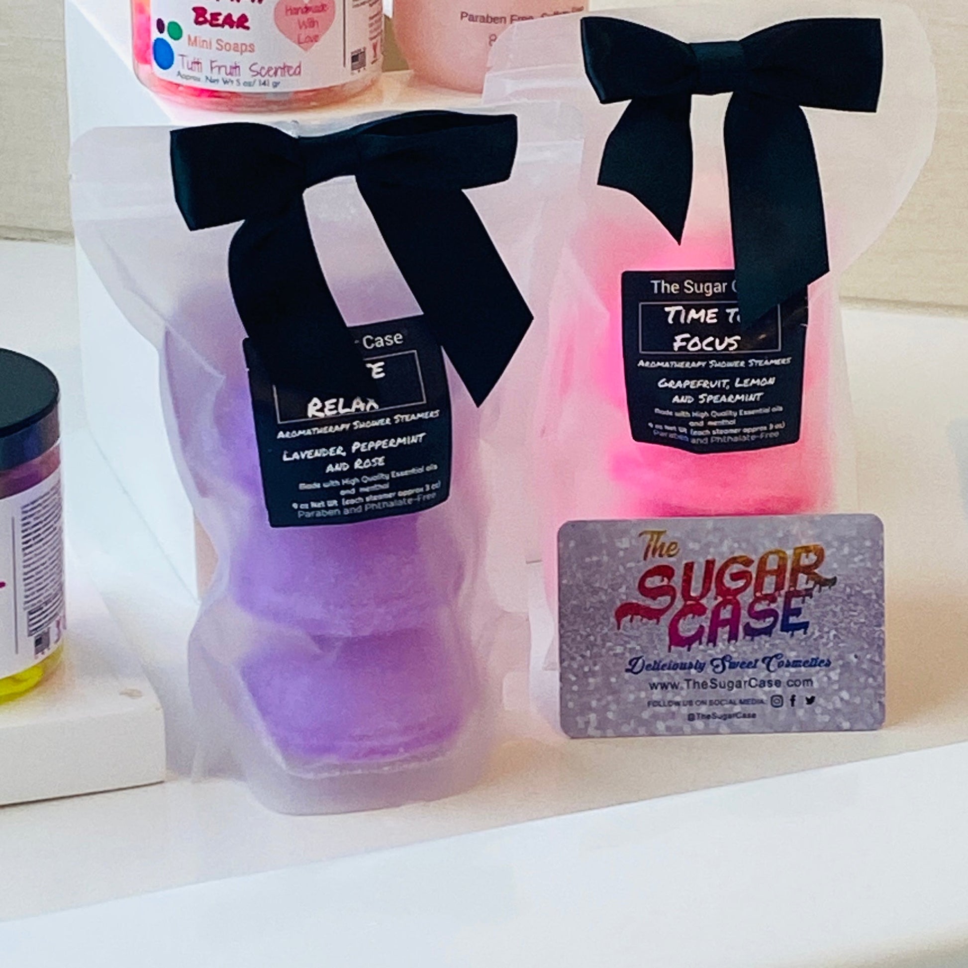 Turn your shower into a spa experience using one of our handcrafted shower steamers. Each shower steamer is packed with aromatherapy scents that will not only benefit you but will also allow you to relax your mind and body. The added menthol helps with congestion and opening your sinuses.